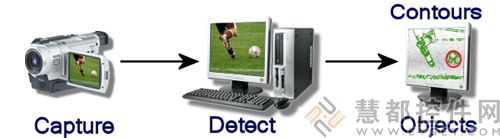 VisionLab is a set of components for basic computer vision. The library allows rapid development of fully featured motion detection applications for the security industry with almost zero lines of program code. It also includes Hough Lines, edge detection, contour detection, Haar face and object detection, robust features, and target detecting/tracking components