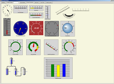 对象可以通过自定义和组合来展现多种不同的形态。在现实世界中,根据行业,这些会被称为测量仪表、标度盘、标尺和测量仪。因为可以有这么多的自定义,GoInstruments不提供预编译工具。但是,InstrumentDemo(工具演示)实例应用程序定义了许多这样可用于不同目的,有着不同外观和操作的对象。