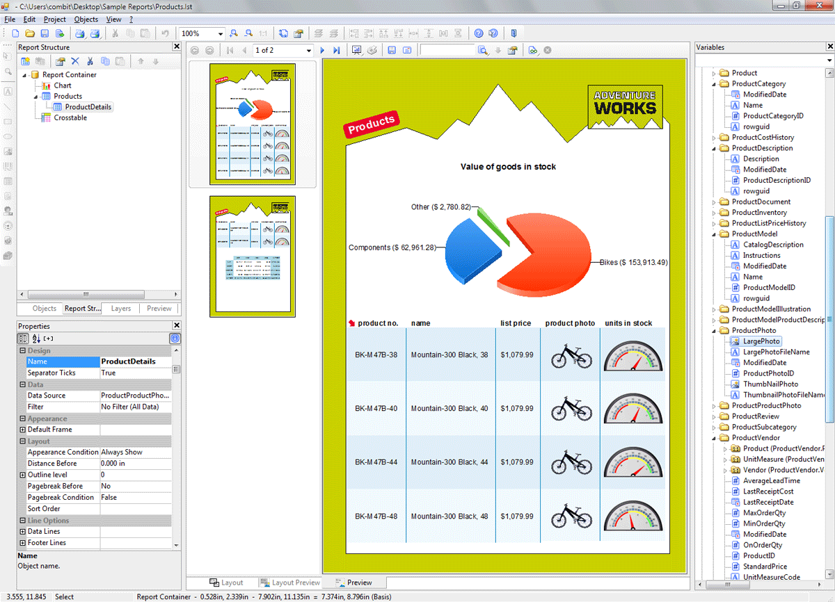 You can enhance your applications by adding only a few lines of code to include all types of evaluations: reports, subreports, simple lists, multi-tables, crosstabs, charts, forms, labels, printing, preview, export and web reporting.