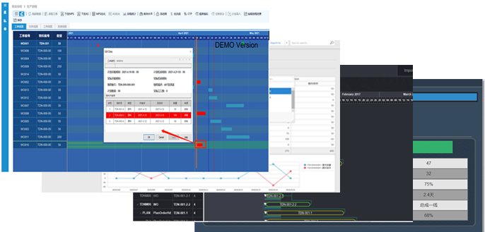 计划员所有操作全部在APS系统中进行操作,包括工单排版,计划排程,实际跟踪全部都在系统中进行操作以及查询,计划员平时一天的计划工作只需要30分钟就能够完成计划的排产、物料需求、产能安排