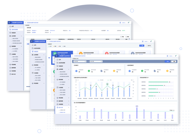 系统可以对项目、计划、设备、人员、任务等不同维度的数据以图表的方式进行数据统计与展示, 便于管理人员可以对各项数据进行统计分析。