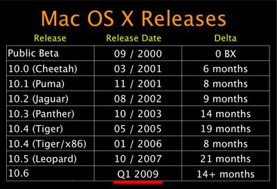 虽然雪豹不会像之前所说的在Macworld展会后一两个月内就发布,但确实会在明年第一季度推出,下面是苹果给出的开发日程图: