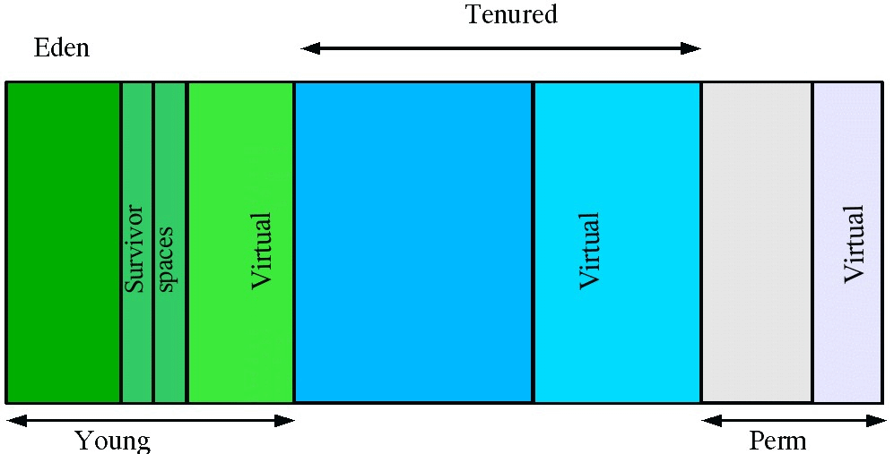 而另一部分内存在JVM启动时就分配给JVM,作为JVM的初始Heap内存使用。影响这个的参数是 -Xms ,如果 -Xms 指定的值比-Xmx 的小,那么两者的差值就是Virtual内存值。随着程序的运行,Eden区、 Tenured区和Perm区会逐渐使用保留的Virtual空间。