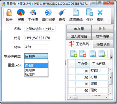 创建某个零部件时,零部件类型属性编辑的效果如下图: