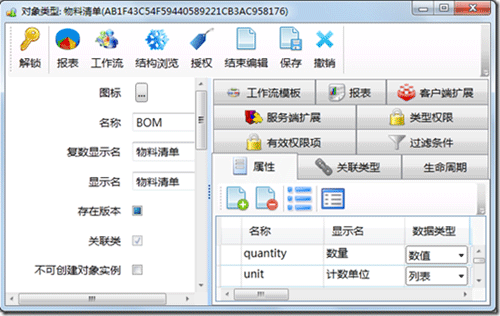 图 为BOM关联类定义“数量”等属性