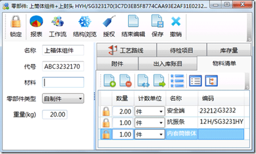在编辑“上箱体组件”时,可以从现有的从现有的物料库中选择添加,界面显示如下: