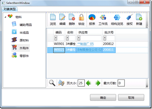 图 从物料类及其子类的实例中选择实例添加到BOM表中