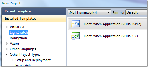 Extension,可以添加、选择不同的扩展包,实际上给开发人员提供扩展LightSwitch默认构建的地方,你可以把自己开发LoB的一些构建设想编写为LightSwitch扩展,让大家来使用。(此处纯属猜想)
