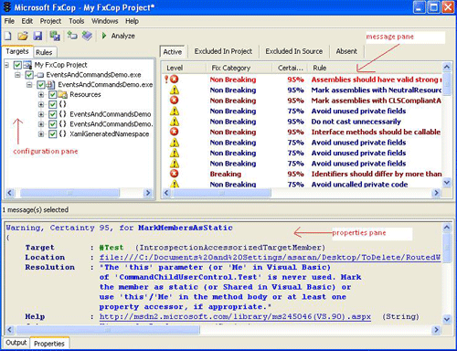 总结:本文详细介绍了FxCop的使用过程,并通过一个示例来进行说明。FxCop是对中间语言进行检测的,所以这里的代码同样适用于C#。