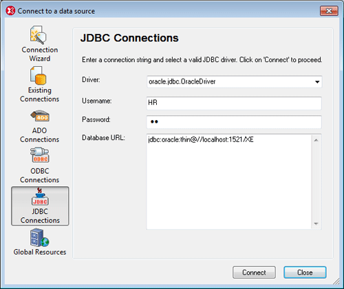 XMLSpy 2012除了支持现有的ODBC和ADO选项外,还在支持JDBC驱动程序。JDBC连接在数据库连接向导中易于配置。
