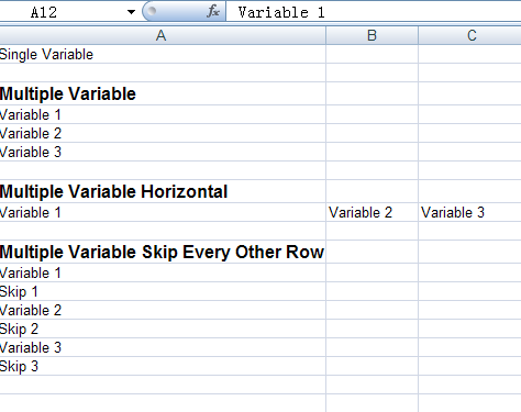 以上的代码说明了改控件支持的各种参数变量,我们先看看报表的模板,然后看看报表的生成内容,对比一下就更直观了。