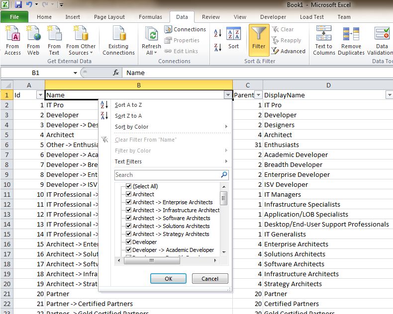 概述:我们见过Excel中的数据过滤功能,可以通过点击表头上的下拉列表来实现数据的过滤,这个功能很实用,省去了我们需要在程序中单独设计数据的查询过滤模块,功能直接依赖于数据绑定控件DataGridView。先来看看Excel中的数据过滤功能。