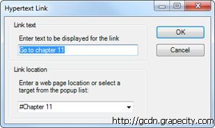 通过Insert / Hypertext Link 菜单为这些文档目标添加链接,之前添加的文档目标的名字将被显示在链接位置的下拉框中。