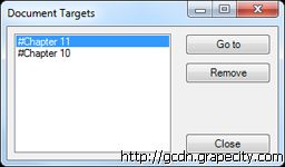 通过给DocumentTargets集合添加一个DocumentTarget对象的方式来添加文档目标。与链接不同的是,文档目标没有可见的文本,所以其构造函数只有一个参数。