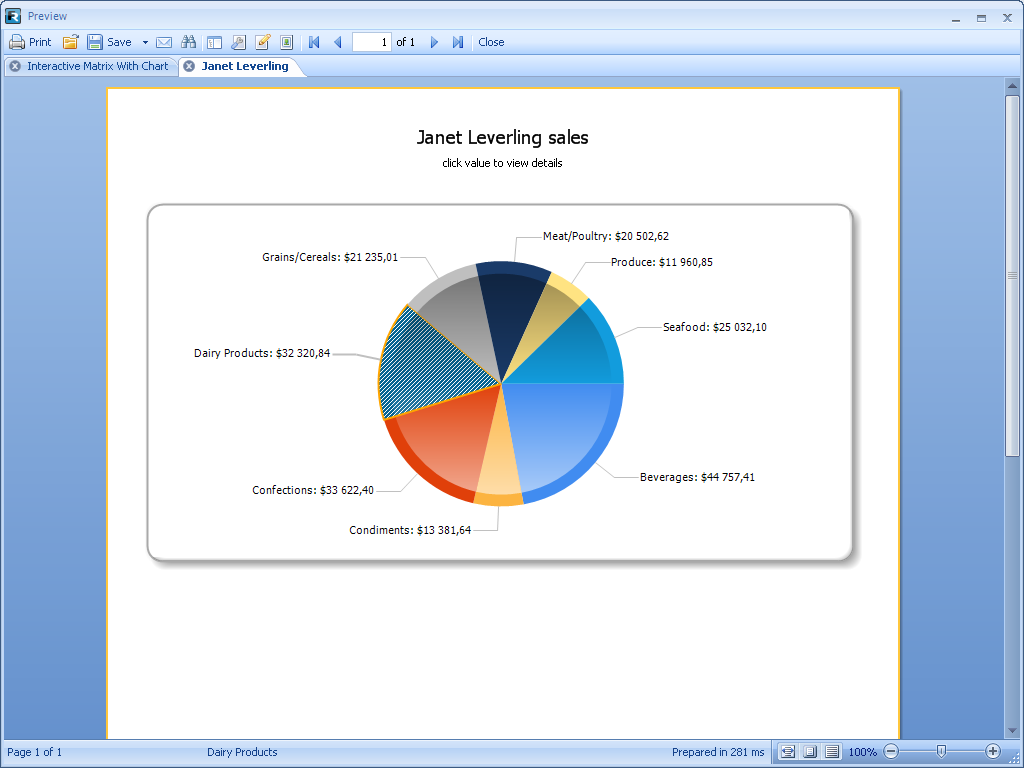 支持交互式报表。您可以定义一个动作,实现如果用户点击预览窗口中的某个指定的对象时,执行该动作的需求。例如,可以实现这种需求,当您的用户点击某一报表的指定位置时,出现展示该行报表详细信息的另一份报表。