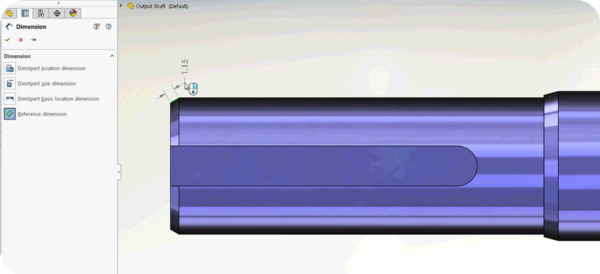 让我们回到图2中的圆锥特征。对于机械师,他们需要30度来设置刀具与轴轴线之间的车削角度。图1显示了预定义的DimXpert制造功能的实现方法。现在,让我们尝试参考尺寸命令。