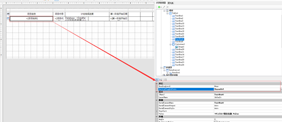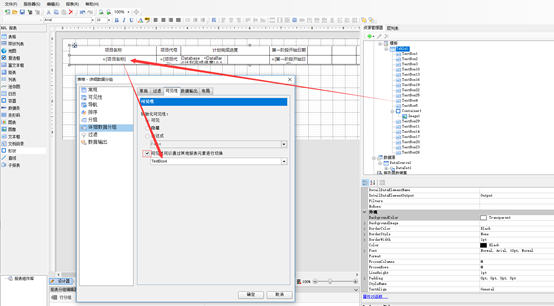 由于要在项目名称这里添加一个可用于“合并和展开”的按钮,所以要在可见性区域,绑定项目名称对应的文本框:TextBox4
