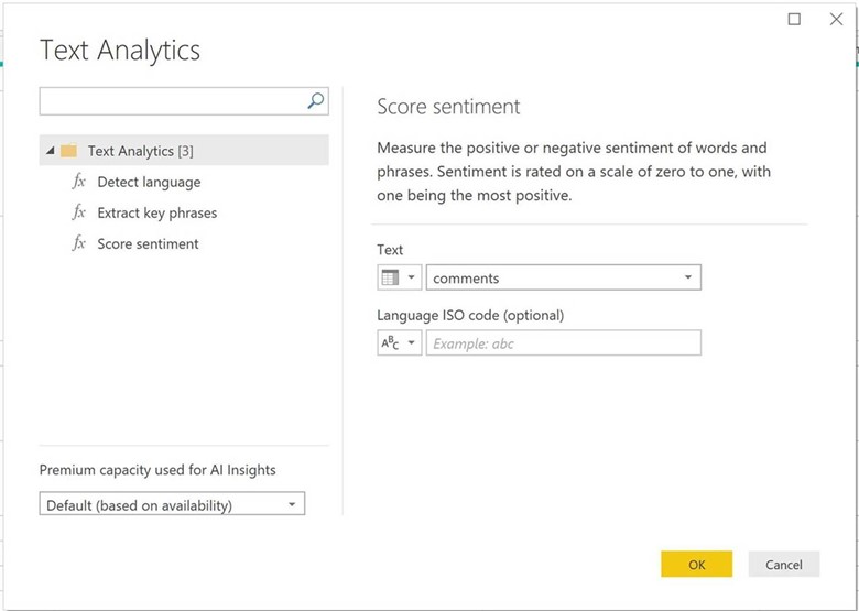 文本分析和视觉模型是高级功能。在“设置”窗口中,您可以选择在编辑报告时要使用的容量。当将报表发布到Premium工作区时,我们将使用与该工作区相关的容量进行数据刷新。文本分析和视觉功能无法在非高级工作区中刷新。