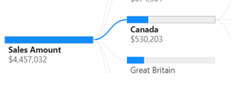 分解树可用于通过查看组中各个类别对整体的贡献来执行根本原因分析。 视觉效果使您可以分解或分解组,以查看其各个类别以及如何根据所选度量(例销售额)对它们进行排名。