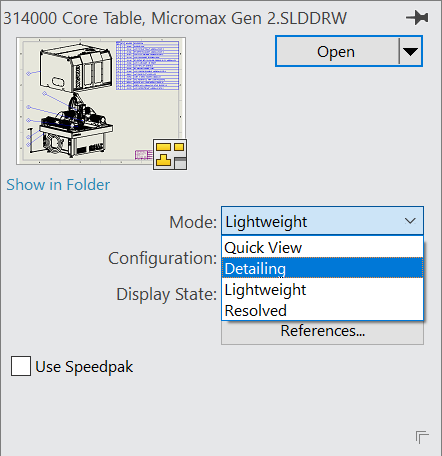 这意味着图纸将快速打开,用户交互将更快。详图模式可能是2020年最受欢迎的增强功能,因为绘图性能对于几乎每个SolidWorks用户都至关重要。使用详细信息模式,用户将不再需要等待很长的打开和重建时间才能开始工作。