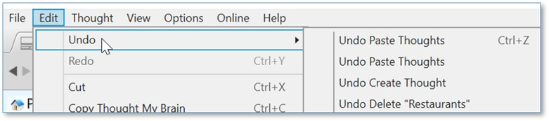 注意:当您关闭和同步TheBrain(包括自动同步)时,“Undo”和“Redo”列表将被清除。