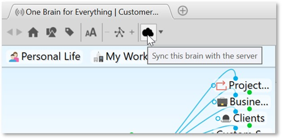 一旦Brain被同步,你的Brain将被自动设置为自动同步。若要关闭此功能,请单击工具栏中Cloud图标旁边的同步状态按钮。