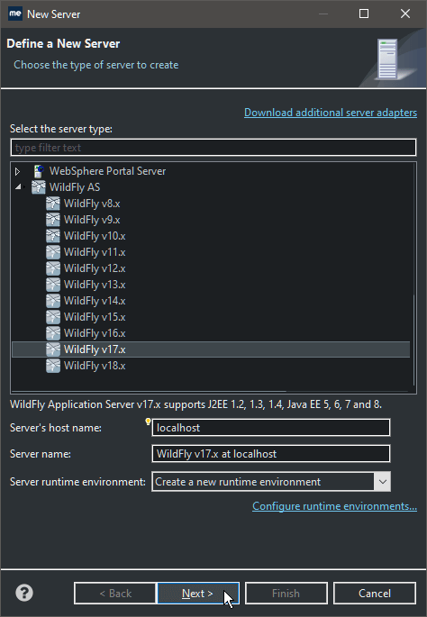 新版本支持WildFly 17和18。使用时若发现服务器因与Java不兼容而无法启动,可在服务器配置页面中选择其他JRE/JDK。值得注意的是,如果没有为连接器指定自定义JDK/JRE,系统将自动切换为使用Java 13运行。