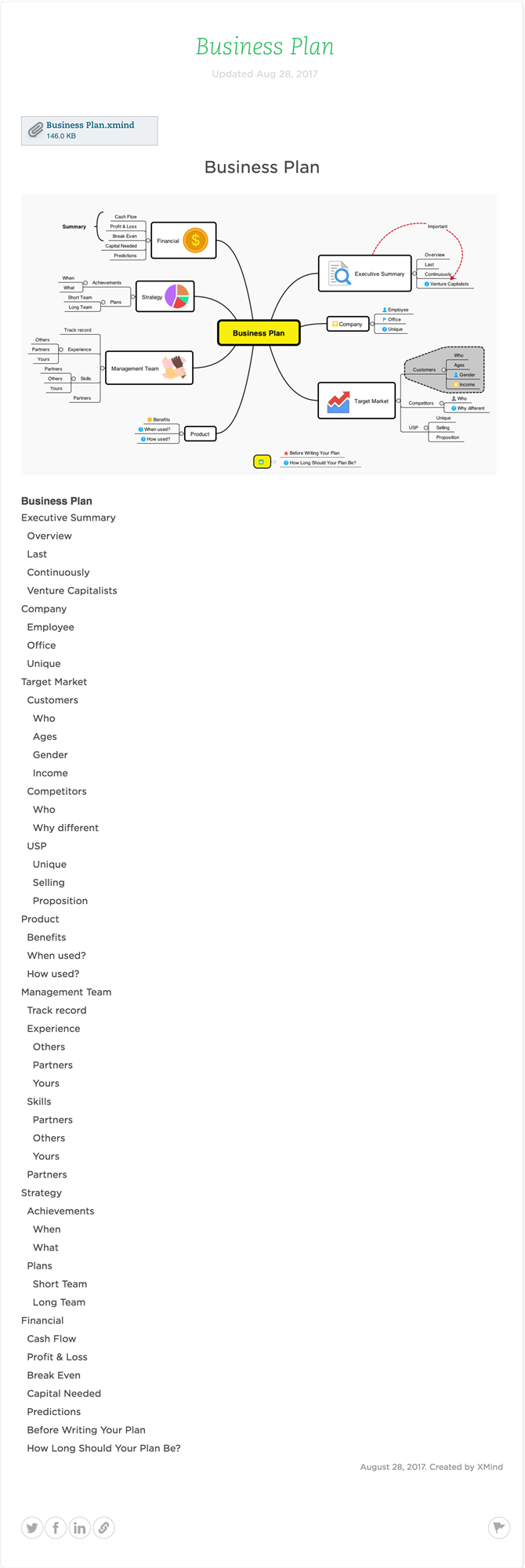 越来越多的个人,团队和组织正在使用思维导图工具,但仍然有人找不到这个有用的工具。如果您的同事(您需要与之分享您的商业计划书)没有安装思维导图软件,该怎么办?这对XMind来说不是问题。