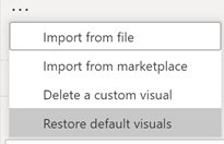 取消固定内置视觉效果后,它会在窗格内的虚线下移动,下次打开报表时,除非您已在报表中使用了该视觉类型,否则它将无法显示。在这种情况下,它将会显示在虚线下方。这意味着内置和自定义视觉效果之间唯一的区别在于默认情况下最初显示内置视觉效果。