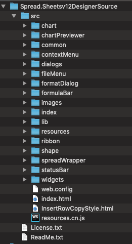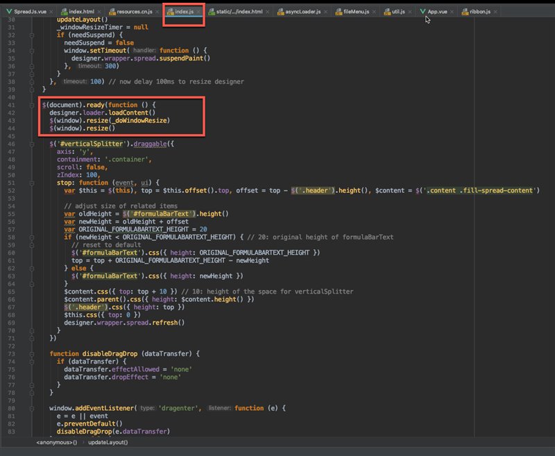 在开发阶段最好引用未压缩的SpreadJS组件代码库(上图标红的代码文件),这样可以方便调试。