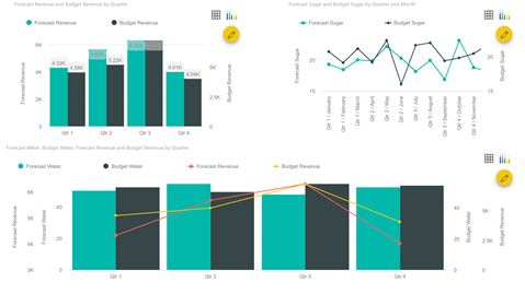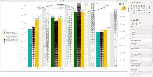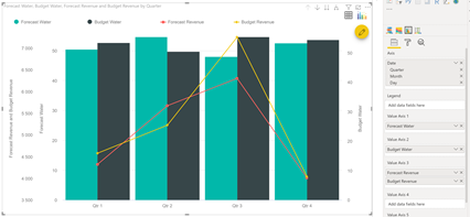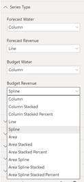 从这里开始,您可以在格式化窗格中进行大量的定制。您可以使用系列类型卡自定义可视类型,混合和匹配以获得您正在寻找的可视布局。