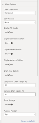 除了使用所有xViz可视化(比如条件格式)获得的所有一般格式化功能之外,还有许多特定于这种可视化类型的控件。例如,您可以选择自定义要将哪些图表类型包含在可视化中,以及它们在格式化窗格的图表选项卡中占用多少空间。