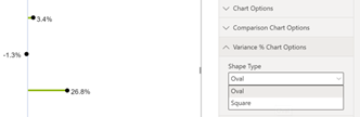 您也可以通过格式化窗格在椭圆和方形之间切换方差百分比图表的样式。