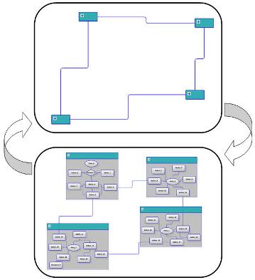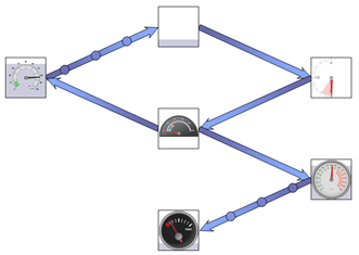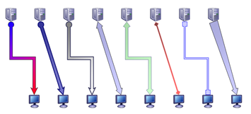 Inside the demo, click the Start button, move the slider to change the speed. InfiView supports live graphical presentation of movements and flow (technical term: moving edges).You can use this to develop applications presenting actual process flow and live location and movement. Several examples, a live metro/subway application, showing location and movement of all the train cars (or buses) in real time, or money flow in a corporation, and how much is currently available in every site, or, live supply chain application, etc. As a programmer you have full control over the weight of the edges (lines or any polygon), their color, the speed and direction of the animation, you can tie it to real life events - and of course, the whole layout could be programatically generated and updated from database(s). |