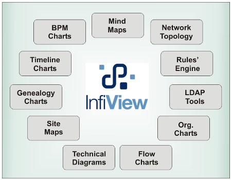 InfiView is enterprise strength. It is fully object oriented and built for extension. It can be used to develop enterprise multi-layered, Ajax applications that are programmatically generated, graphical, interactive and dynamic, using ANY data size and any language. Several potential enterprise InfiView applications are: